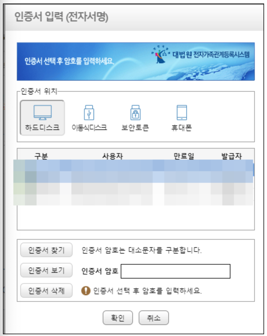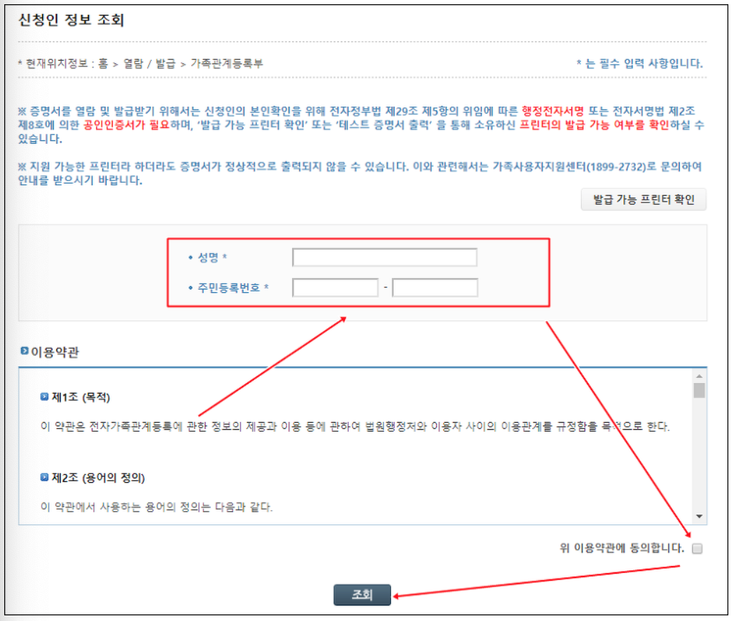 먼저 가족관계증명서 인터넷발급을 위해 공인인증서가 필요 합니다. 또 출력을 위한 프린트기도 준비하시면되겠습니다.