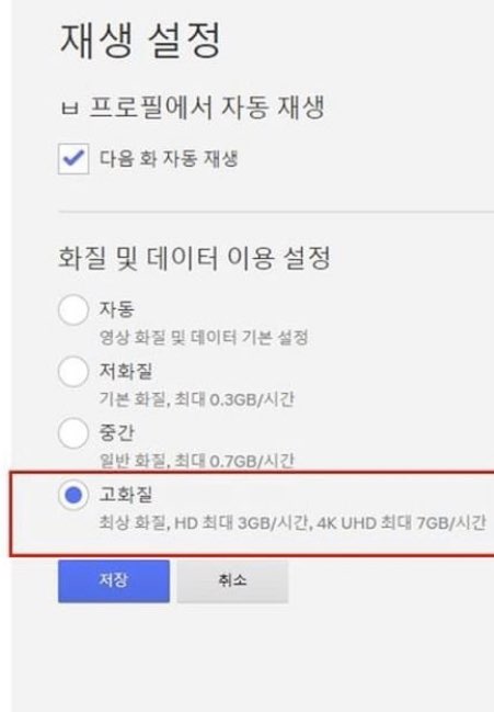 넷플릭스는 인터넷 속도에 따라 화질이 지동으로 변경하게 되는데 원하는 화질을 선택해 볼수도 있습니다.